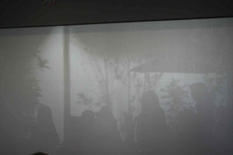 そこのショールームの壁には大きなスクリーンがあり、雑談をしている皆の姿がシルエットで映っていました。