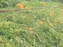 線路際の手付かずの草地に群生するカンゾウ。