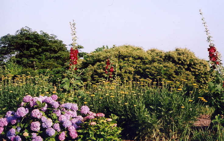 ノコギリソウ・タチアオイ・フランネルソウ・シャスターデージーなどなど。風土に合い、生き生きとした立派な株。