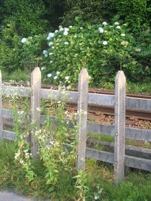 コンクリート製の古い柵とその足元の植物。