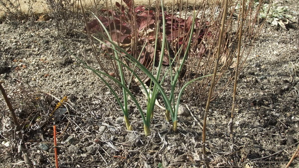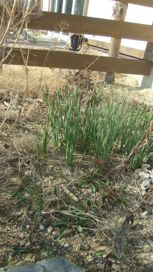 このあたりのカップ咲きスイセンとアイリスの目出しは2月初旬には現れていた。